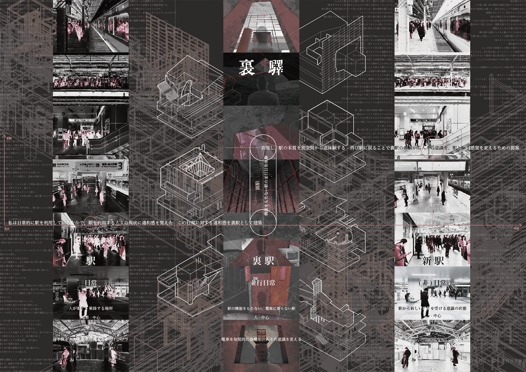 私が日常に抱いたこの違和感を建築表現し、現状に対する意識を変えるための提案。