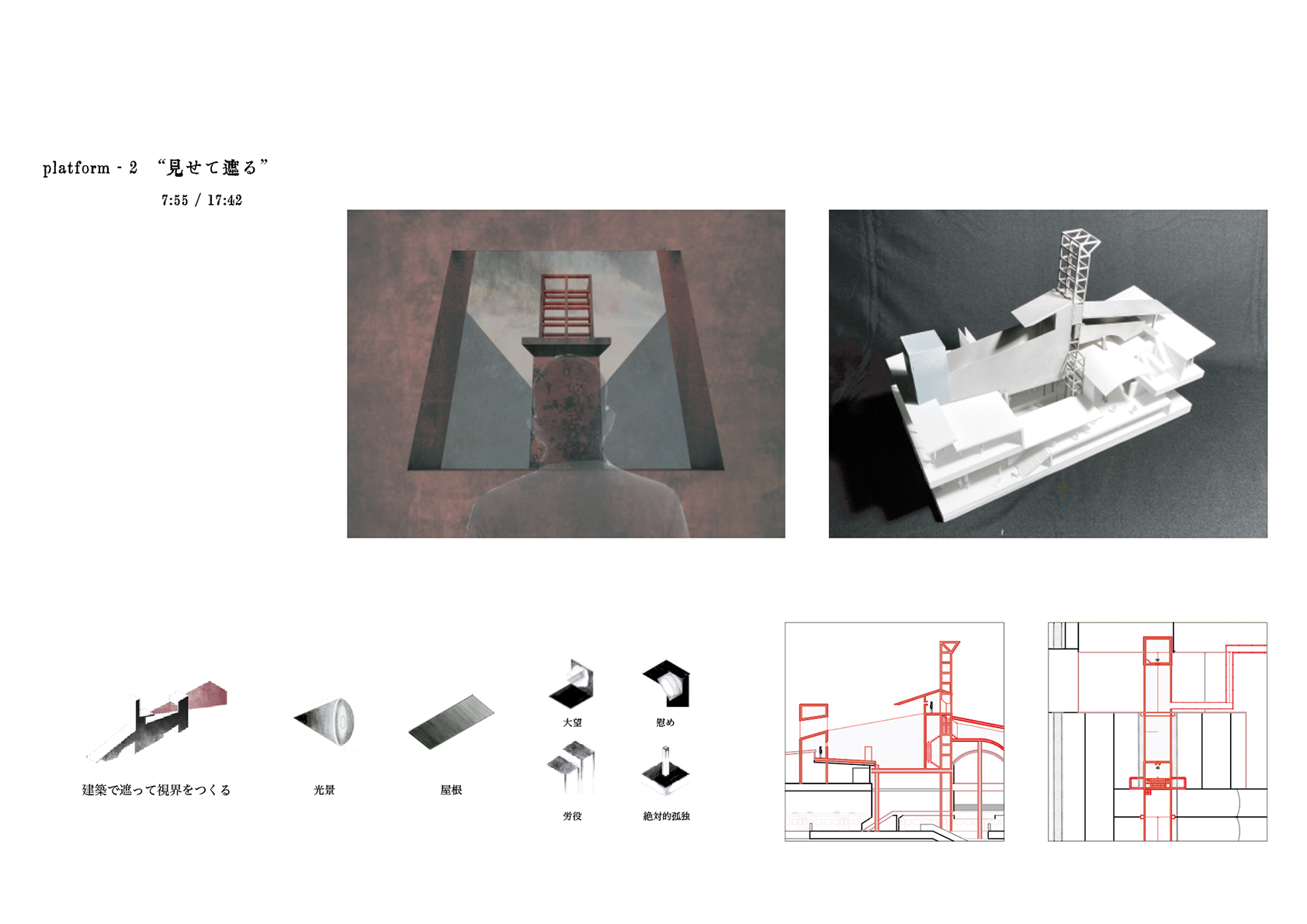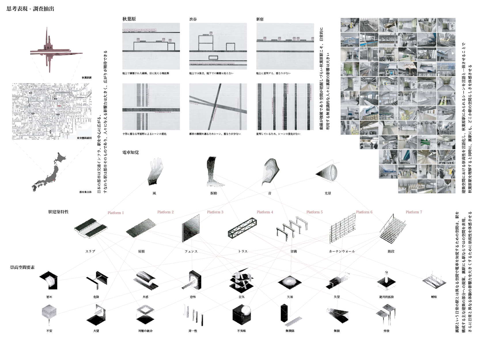 裏駅は、7つのプラットホームと呼ぶ建築空間と、それらをつなぐ動線から構成される、一連の体験をいう。