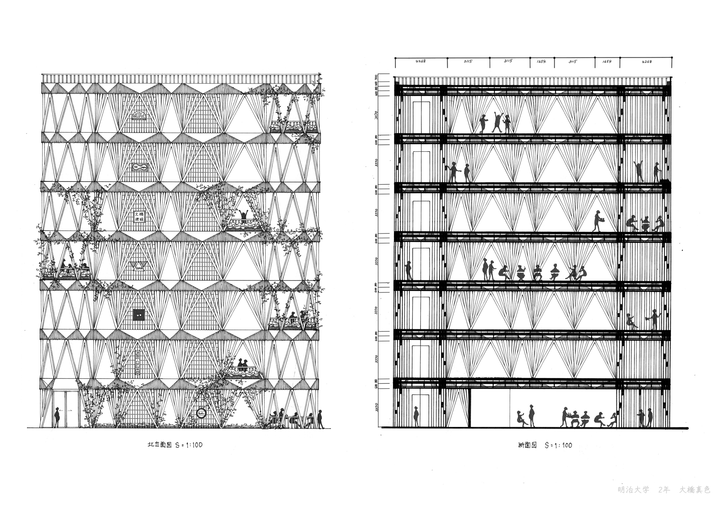 茗渓通りには飲食店や書店、画材店が軒を連ね、明大通りではいくつもの楽器店やカラオケ店が人々を誘う。比較的小規模な建物がひしめき合って形成される通りの風景は、独特な味と親しみをたたえている。壁や窓には色とりどりのサイン、歩道には植木鉢が並べられ、店が開けば立て看板や陳列棚が通りへ滲み出す。
