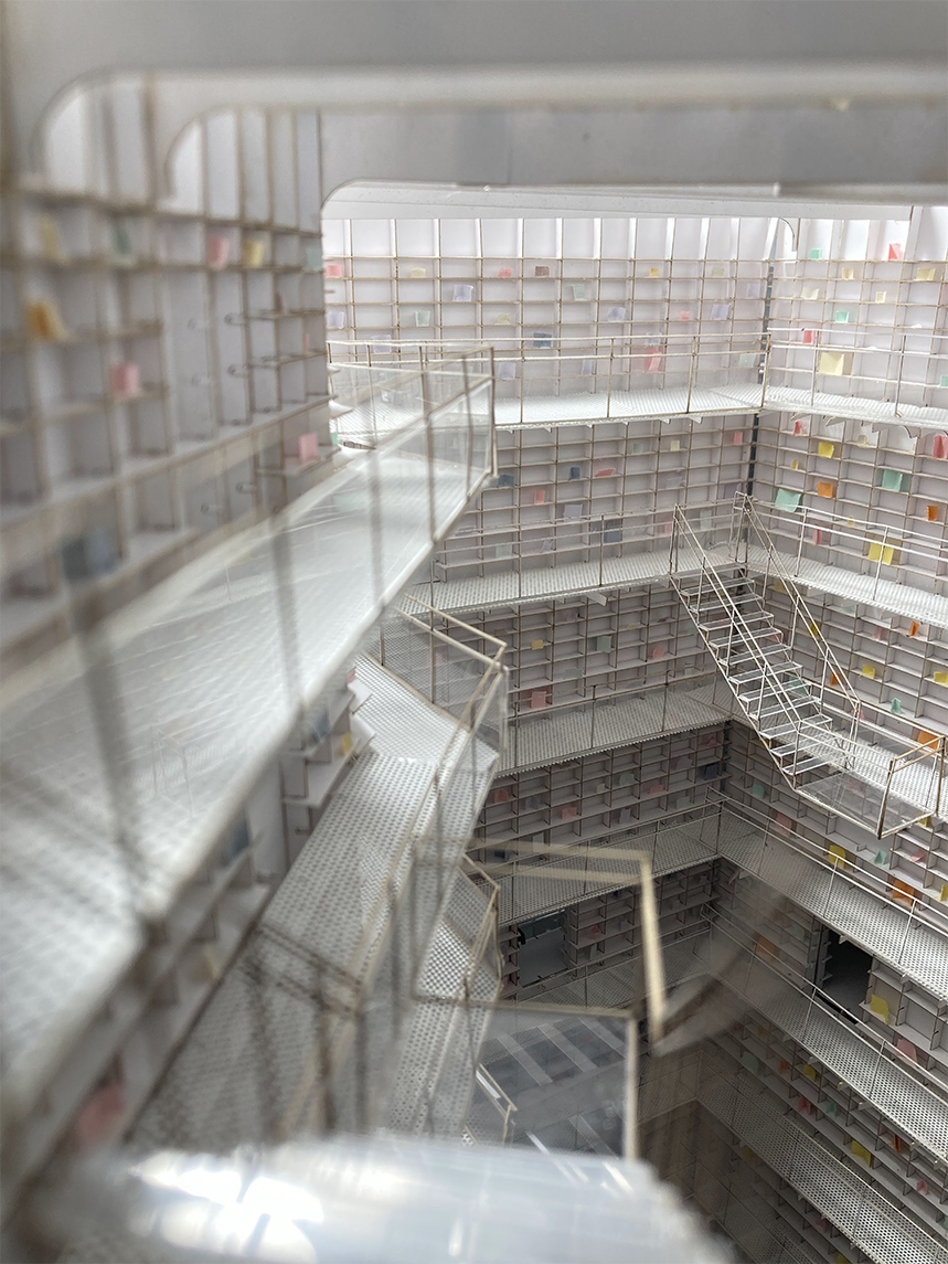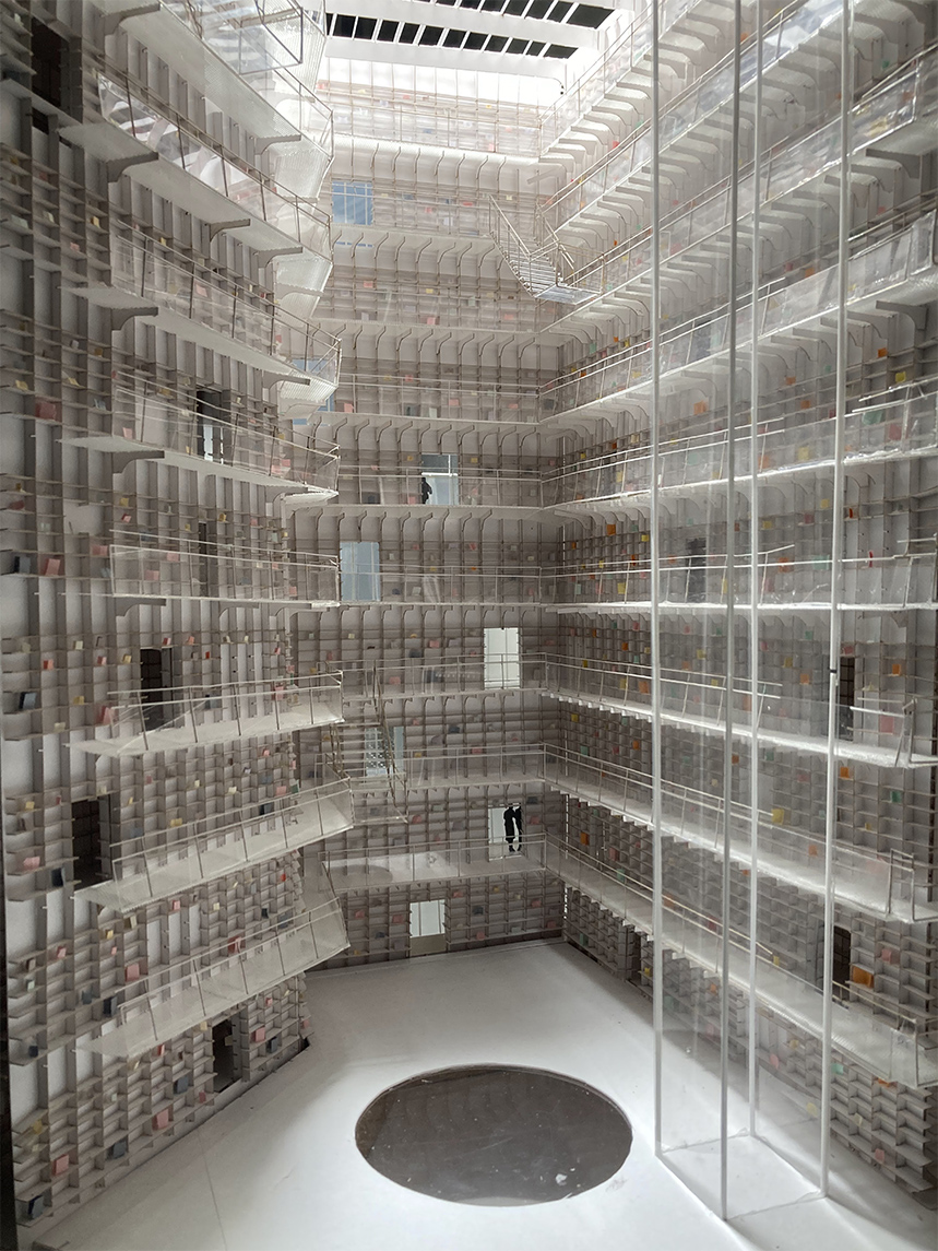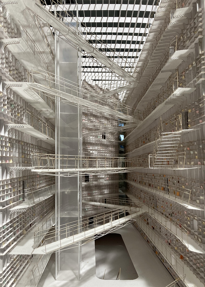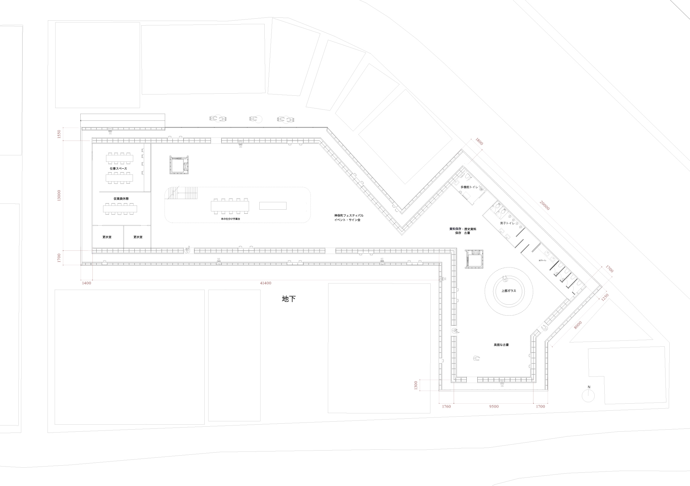 歴史ある三省堂書店だが、建物は変化しても、神保町駅や⽬的の場所から歩いて三省堂書店まで向かう道のりの記憶はそのままに、⼊り⼝の場所も変えずに設計する。