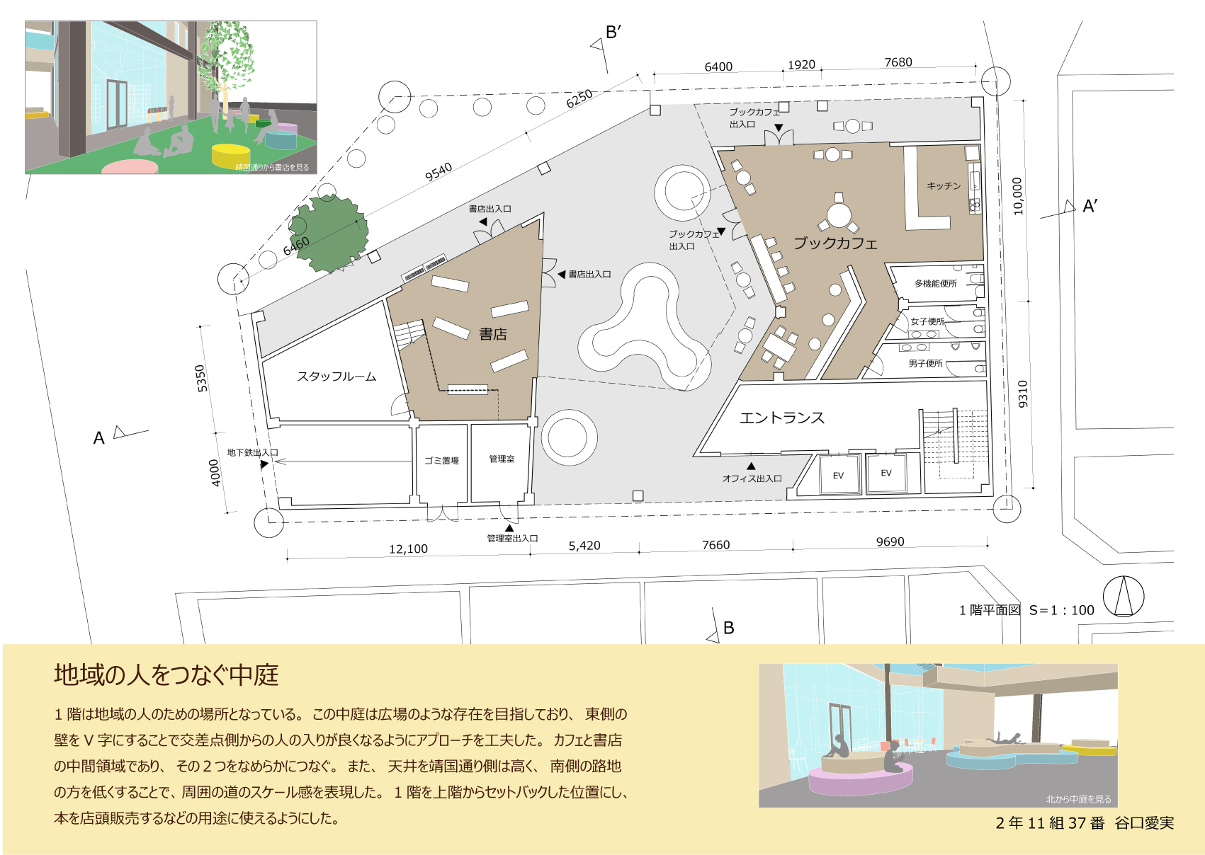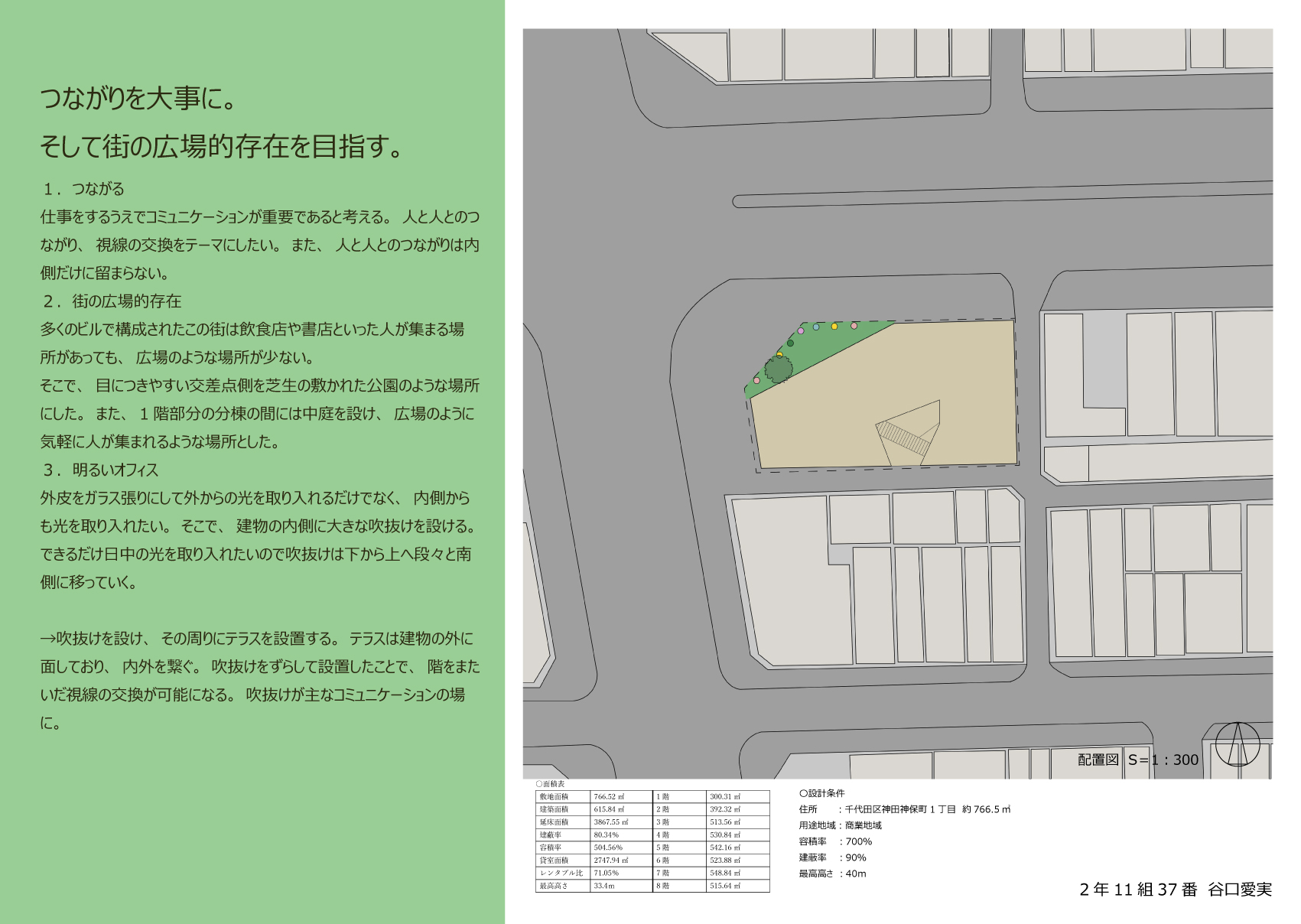 探し当てた本とともに気に入った喫茶店に入店し、読書に耽る、といったように自分の好きな空間で、本が生み出す世界に一人で浸ることも魅力的なことである。しかし、知が集まる神保町で、異なる背景や視点をもつ人々の偶発的な出会いは、その知をさらに深め、豊かにするのではないだろうか。本だけでなく人との一期一会を楽しむ場をつくりたい。