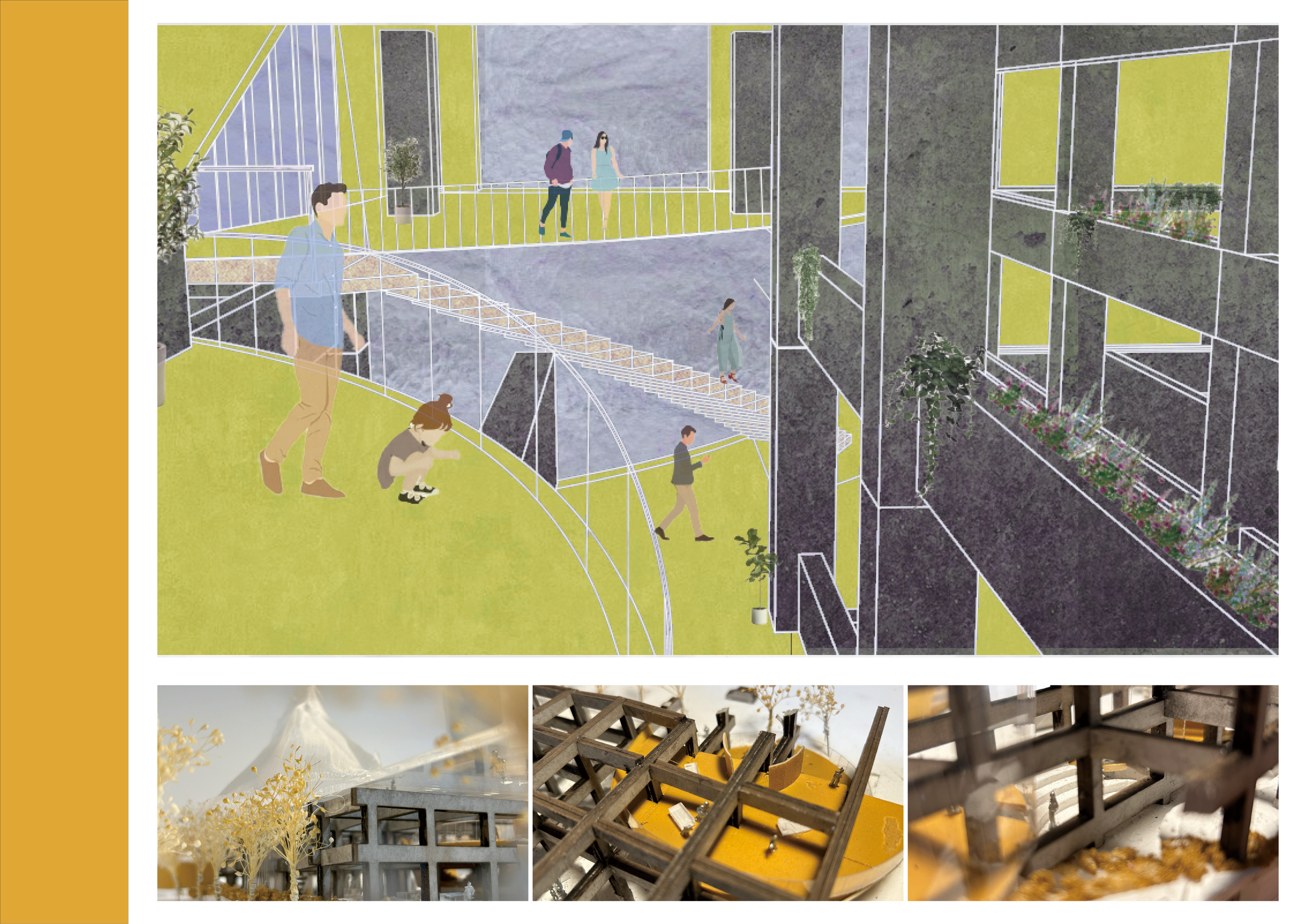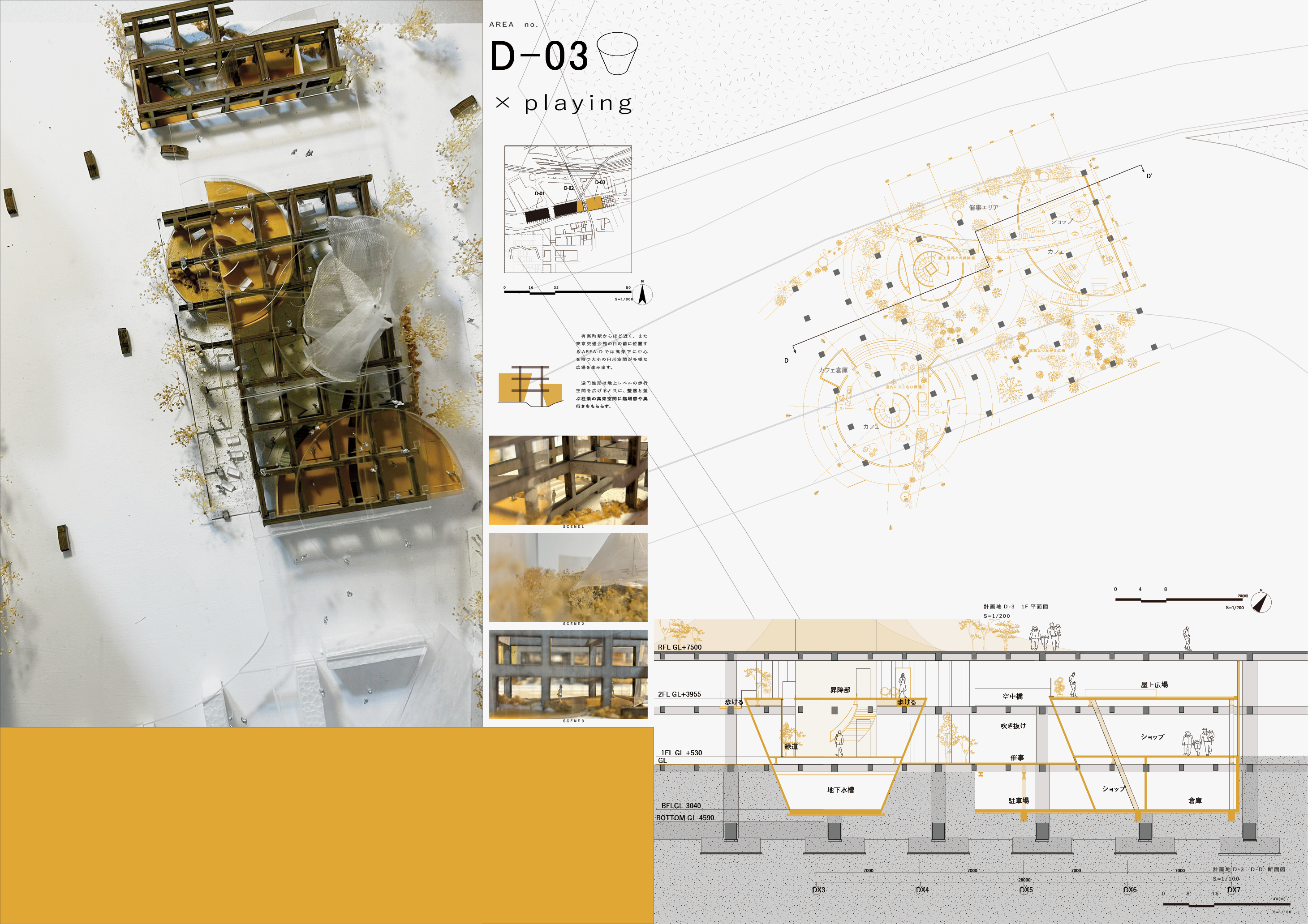 インフィルとインフラの物質/機能的絡み合いをより柔軟なものにすることで、歩行体験をより⼈間的にし、また都市の更新速度がより緩やかなものとなることを期待する。
